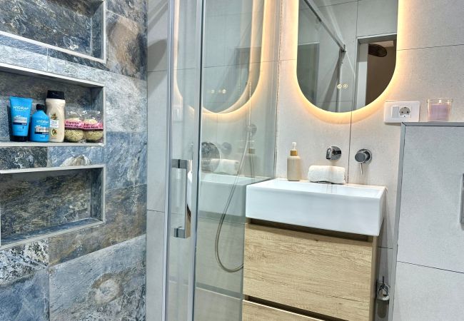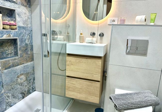 * Baño Moderno: Con un amplio plato de ducha.