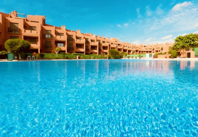 * Terrace with Pool Views: Exit from the living room, the ideal place to enjoy your morning coffee or romantic dinners at sunset, with direct views of the complex's large communal pool.