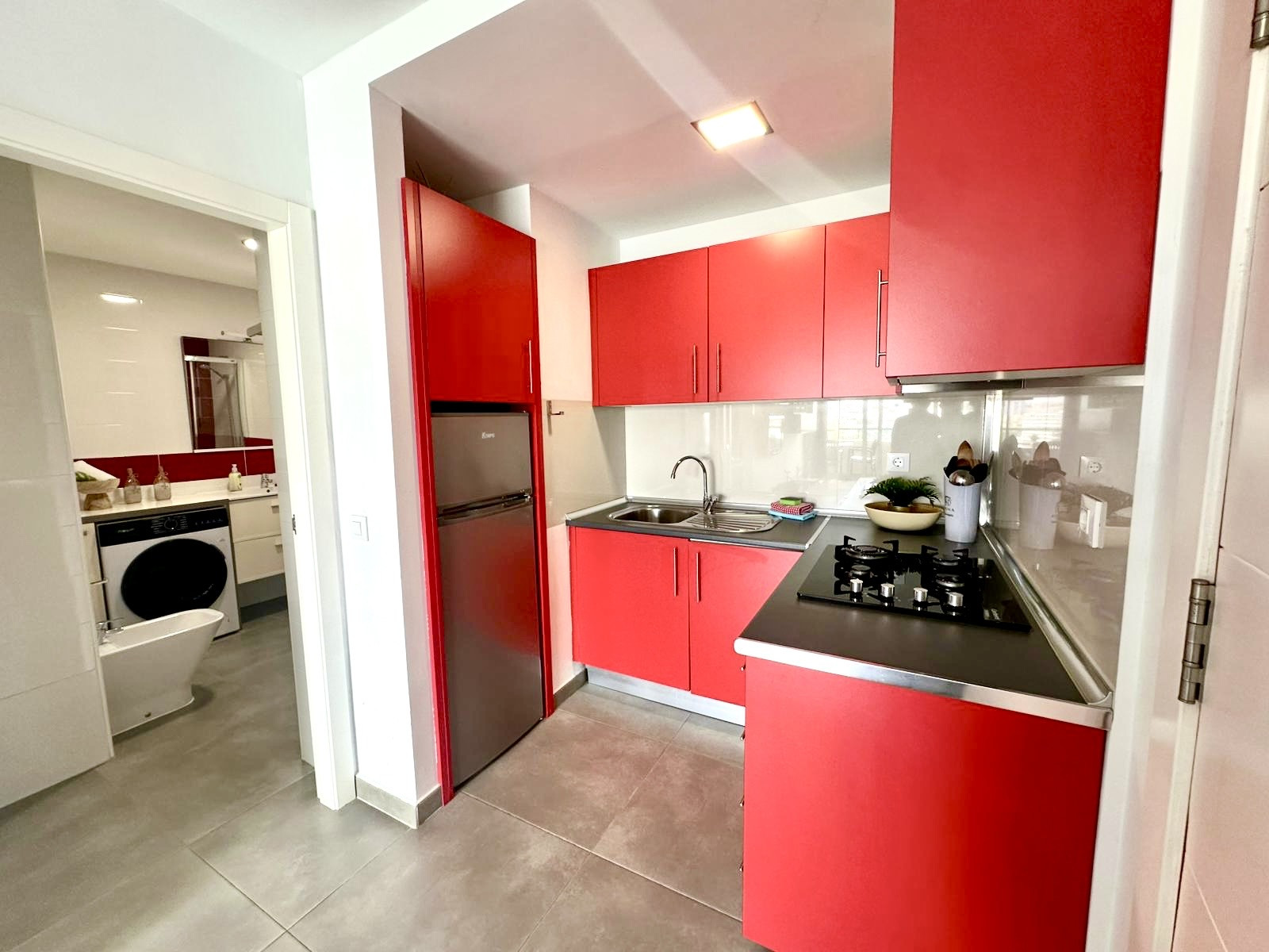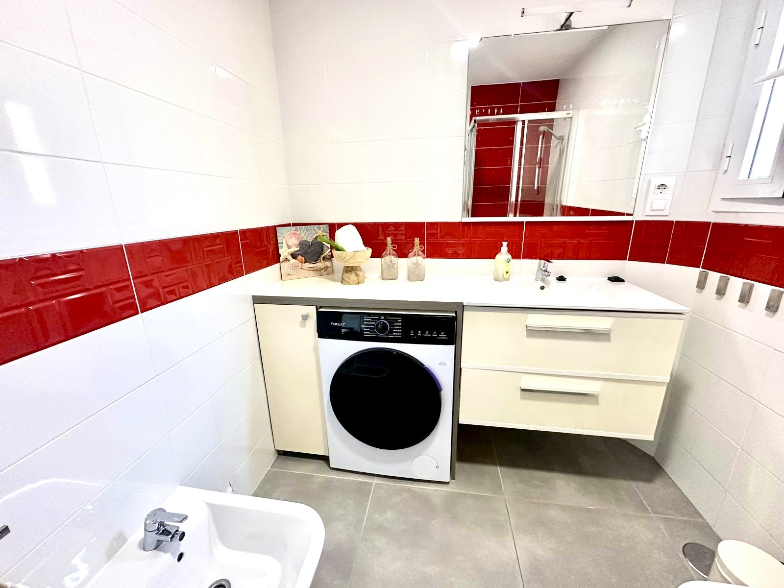 * Bathroom (Renovated): Modern and functional, includes a shower tray, bidet and washing machine for your convenience during long stays.