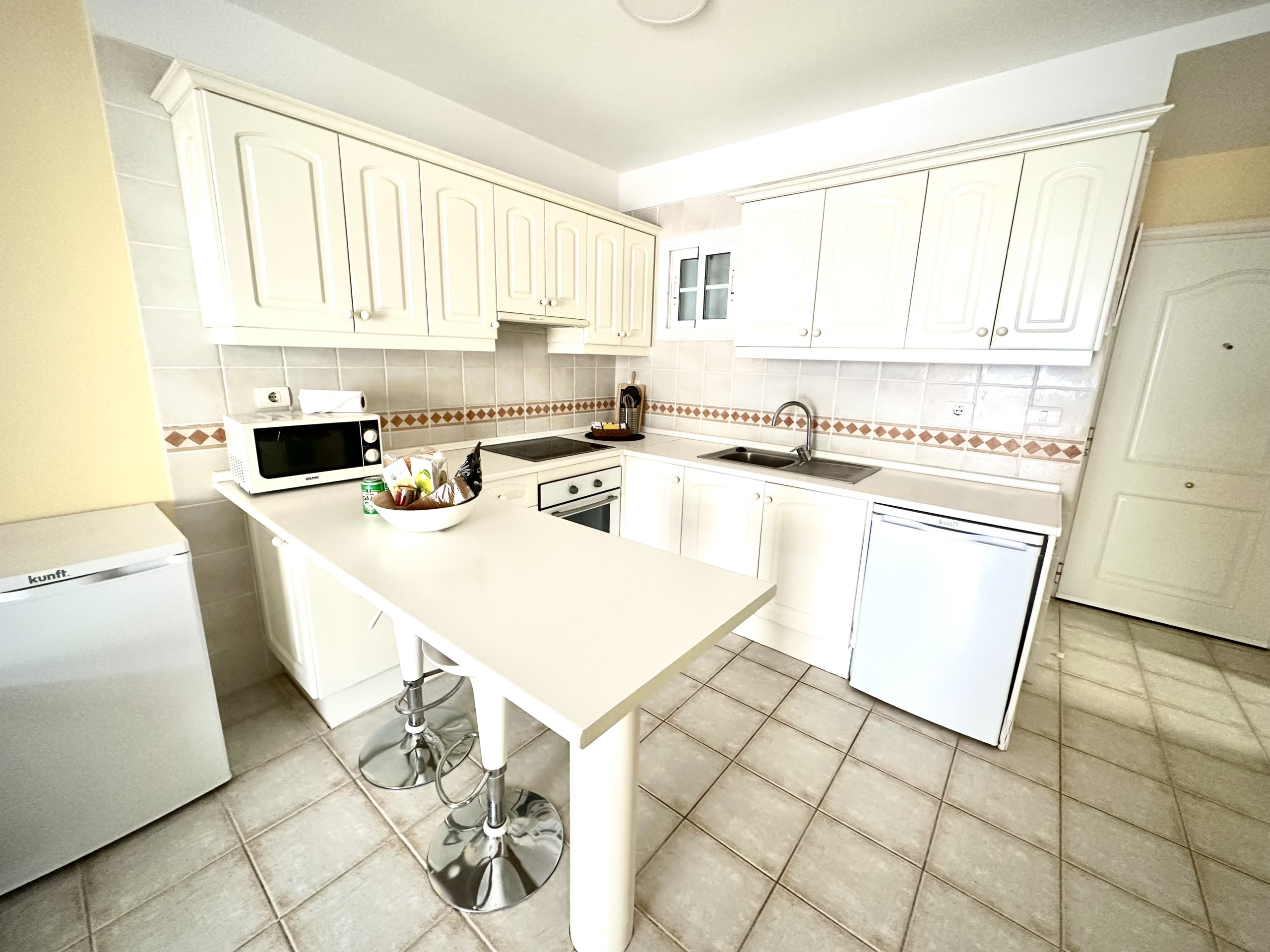 • Complete Kitchen: If you like cooking, you'll find everything you need. It has an oven, ceramic hob, fridge, and all the necessary kitchenware. Perfect for preparing your favourite dishes!