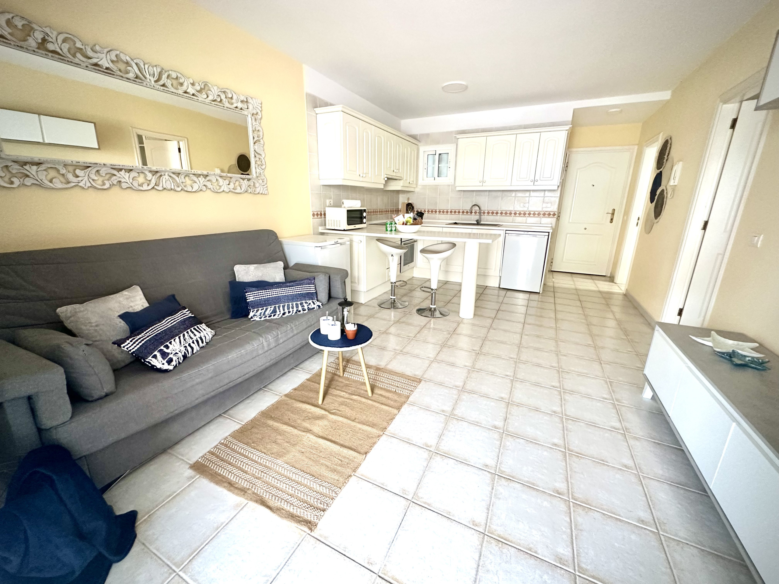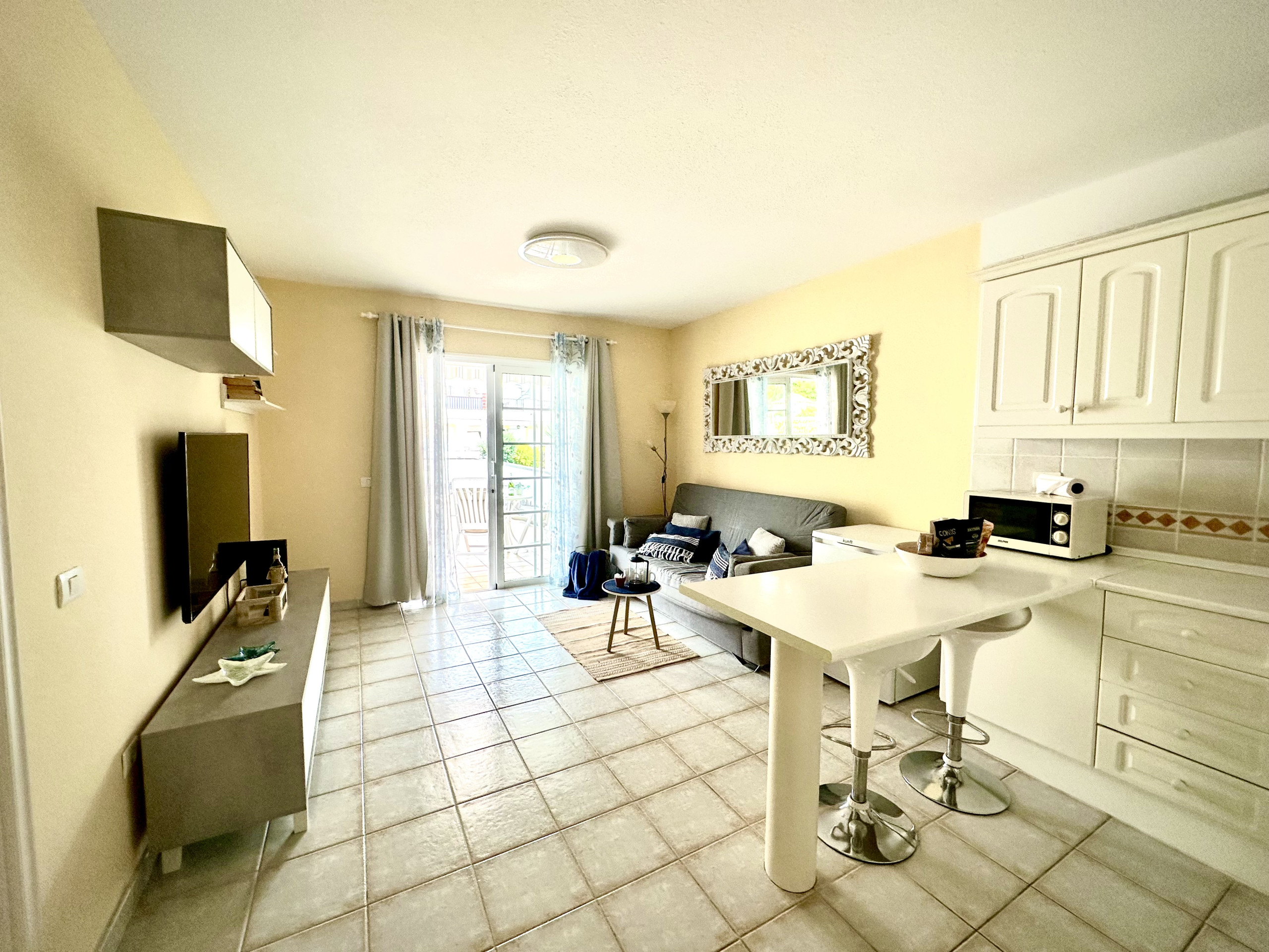 Get ready to enjoy the sun of Tenerife in this fantastic apartment located in one of the most peaceful and strategic areas of Los Cristianos. The jewel of the house is our enormous private terrace, a sun-drenched space ideal for breakfast, sunbathing, or enjoying a quiet dinner outdoors.