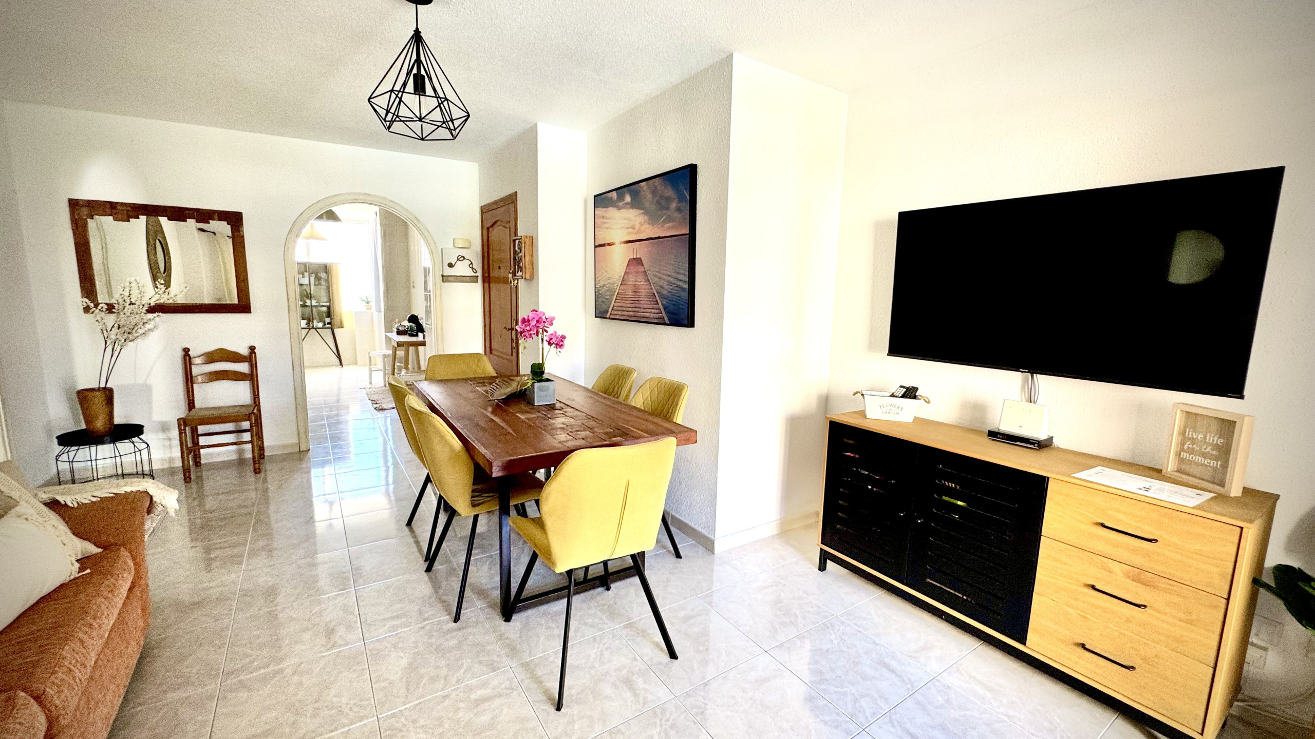 * Living Dining Room: Spacious and bright, with a large table for eating, comfortable sofa bed and a 55" Smart TV with international channels.