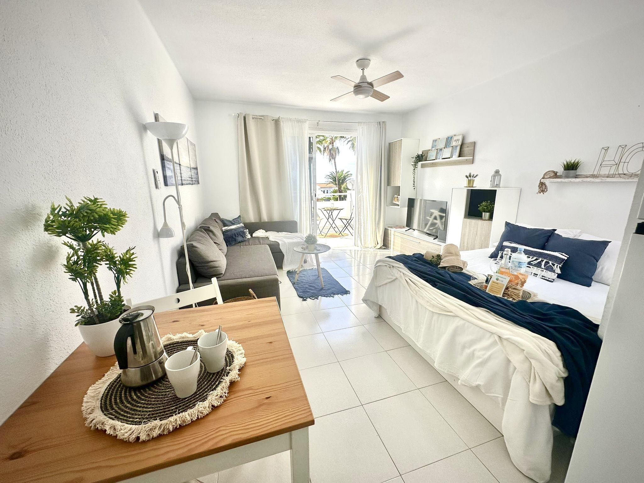 The studio has a capacity for up to 4 people, it has a double bed and a double sofa bed. They also have at their disposal a kitchenette with everything you need for your vacation such as a washing machine, refrigerator and all the necessary kitchenware, a complete bathroom with a bathtub and a bidet and of course a large balcony with beautiful views of the sea from where you can enjoy wonderful sunsets.